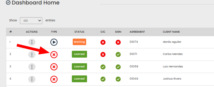 Click the red 'X' on the left side of the agreement to pull up the closing screen