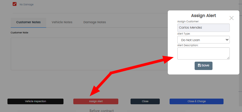 Click the 'Assign Alert' button to put the customer on a Do Not Loan list.