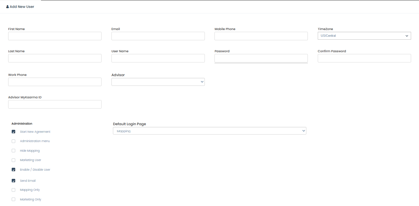Add New User: