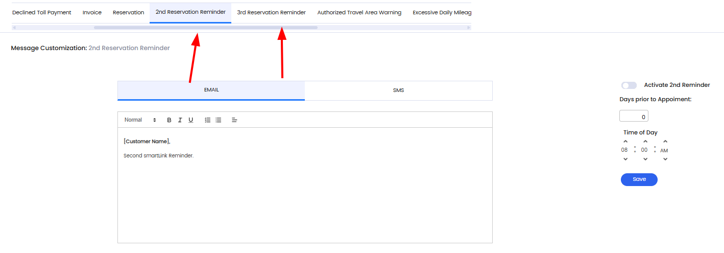 When a reservation is created, customers automatically receive a link to provide their information before arriving at the dealership. If the form remains incomplete, you can automate second and third reminders via the Message Template tab in Account Settings. These reminders can be scheduled for specific intervals leading up to the reservation date to ensure all data is collected before the customer walks through your door.