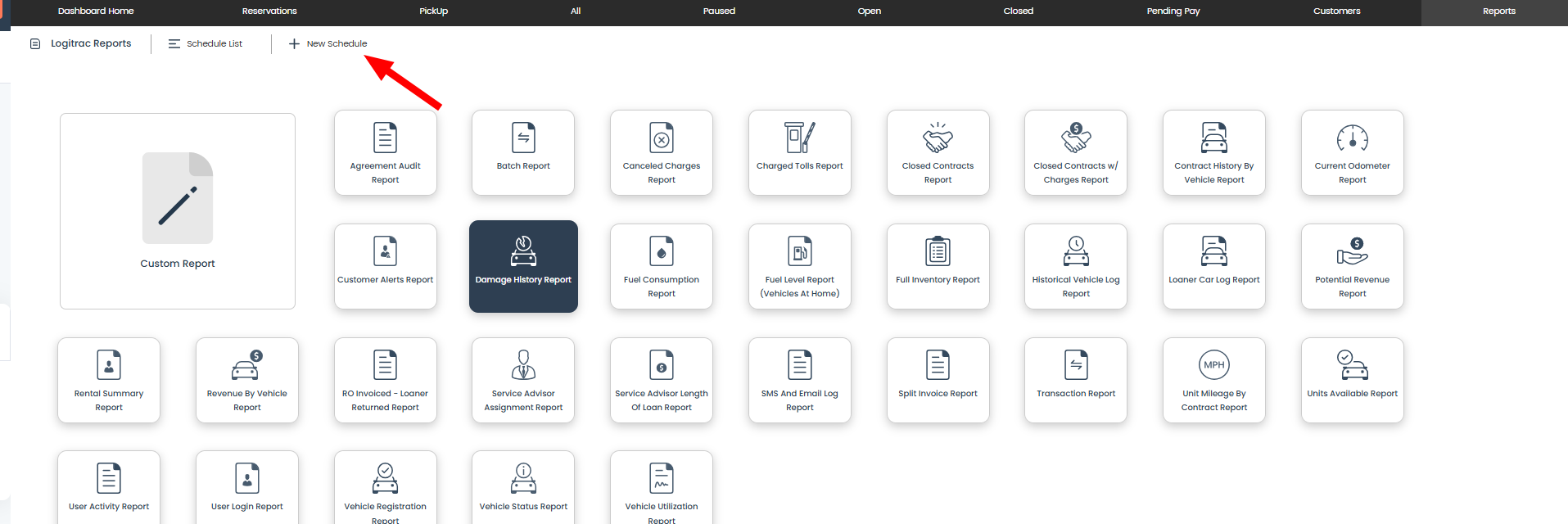 Click the "+ New Schedule" button at the top of the screen.