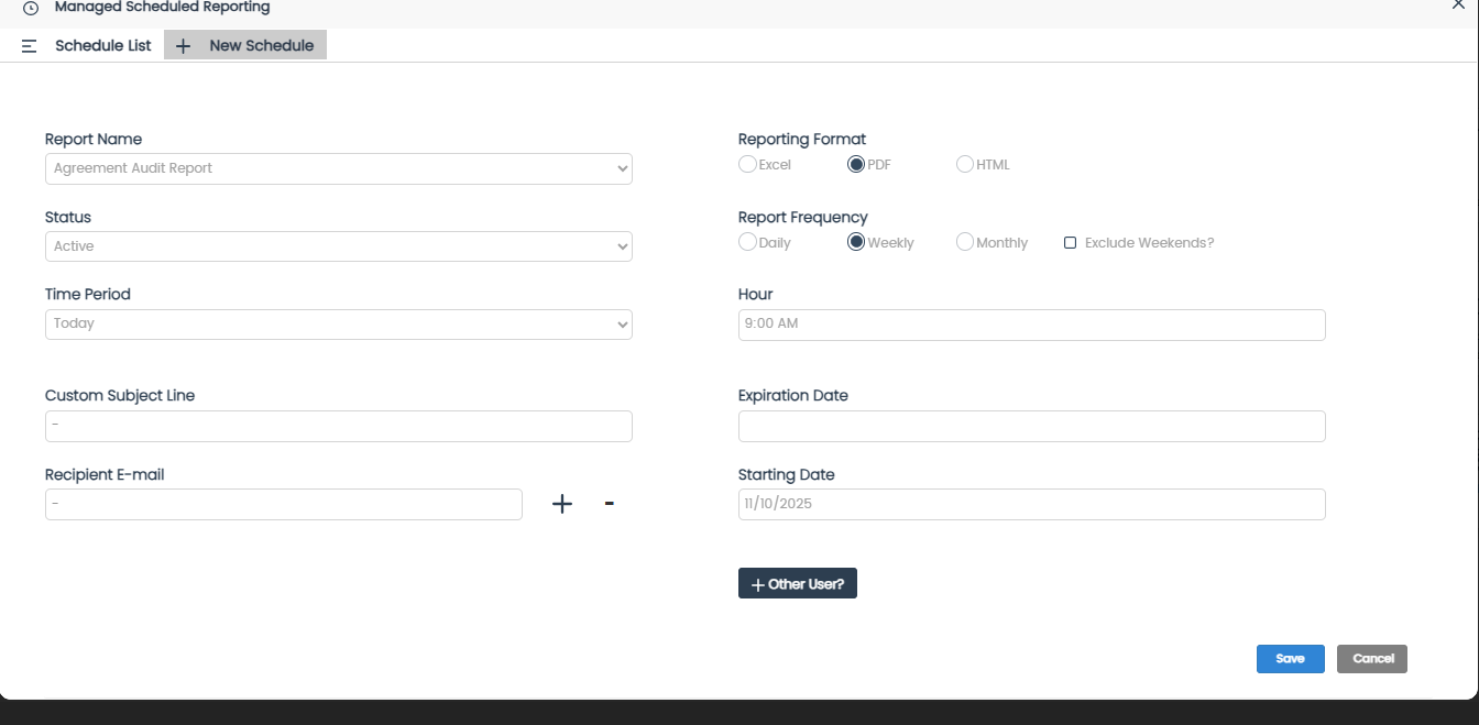 Frequency – Set how often you'd like to receive the report (daily, weekly, monthly).